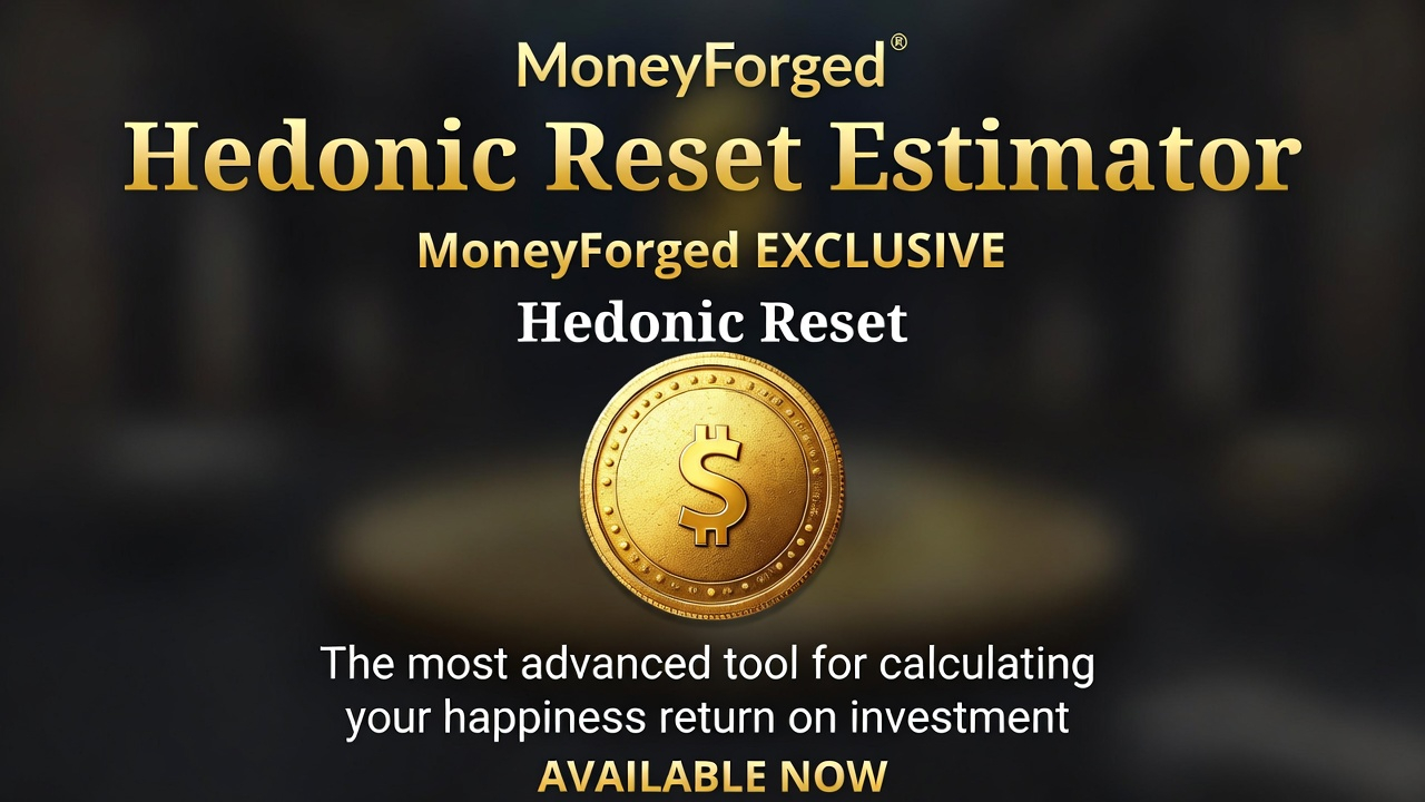 Head to The Hedonic Reset Estimator on MoneyForged.com right now. Plug in your real numbers—no sugarcoating. Feel the sting if it’s big. Then start the reset ladder today. One hard choice at a time: the 3-second rule out of bed, the boredom weapon, the auto-transfer lock on income bumps.